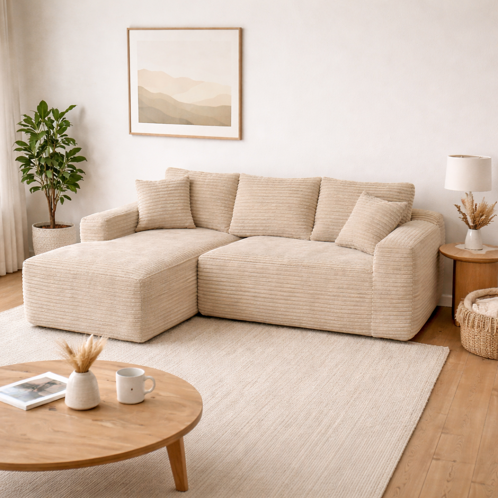 Envie d’un canapé en velours côtelé qui soit à la fois beau, confortable et facile à installer ? Joya Home mise sur un grand canapé d’angle compressé, livré en cartons, avec des matériaux de niveau matelas haut de gamme pour accompagner votre vie quotidienne pendant des années.