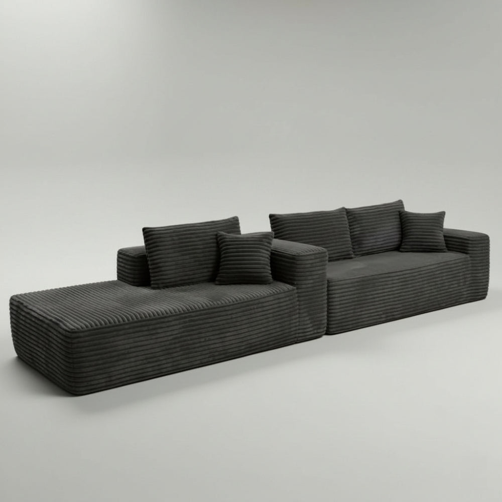 - Design actuel : lignes épurées, assises généreuses, velours côtelé épais et ultra doux.