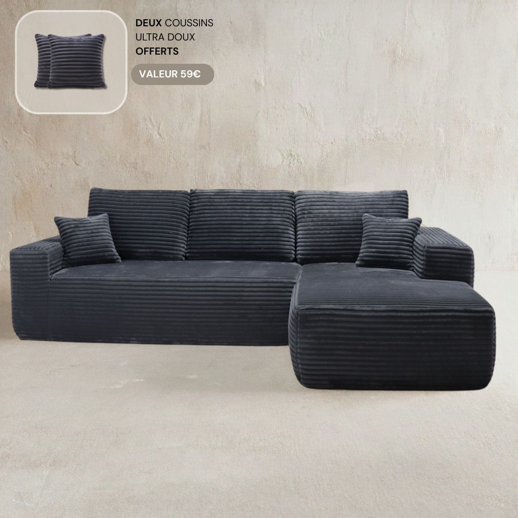 Le Méridia est un grand canapé haut de gamme en velours côtelé, offrant un format 4 places avec méridienne pour des instants d’exception. Grâce à la technologie SoftRecover™, son confort absolu s’installe en un instant, dans un design qui sublime naturellement vos espaces de vie.