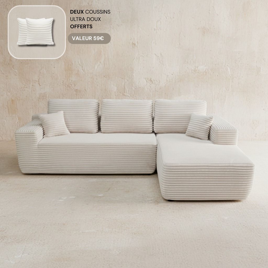 Le Méridia est un grand canapé haut de gamme en velours côtelé, offrant un format 4 places avec méridienne pour des instants d’exception. Grâce à la technologie SoftRecover™, son confort absolu s’installe en un instant, dans un design qui sublime naturellement vos espaces de vie.